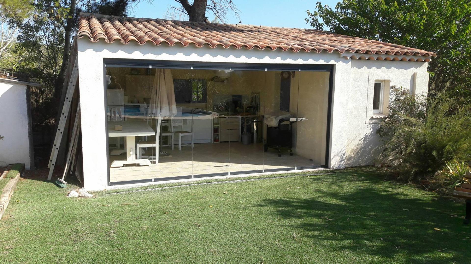 La fermeture en verre pliante et coulissante est la menuiserie idéale pour fermer vos terrasses, cuisines d'été, loggias...